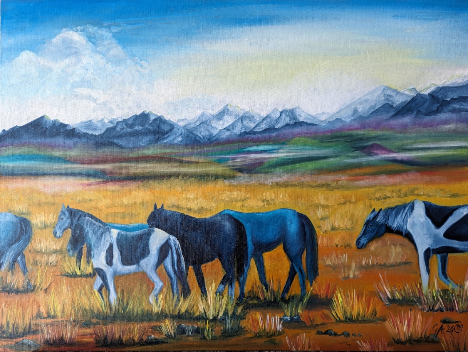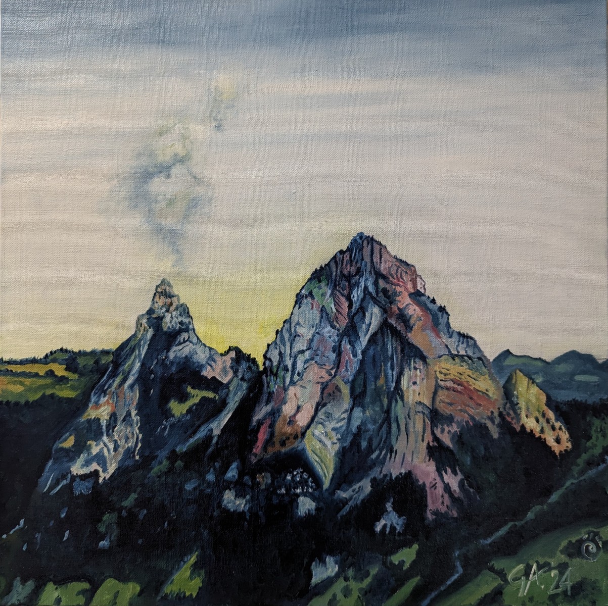 Technik: Ölfarbe auf Leinwand, Pastellkreide